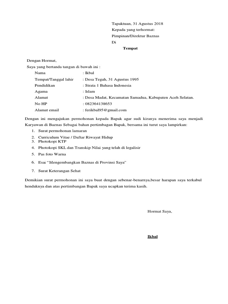 Contoh Surat Lamaran Kerja Baznas Surat Lamaran Kerja Desain Contoh Surat Aknrvranzx